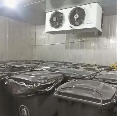 (2)1~4℃垃圾冷庫制冷系統配備的是1套2HP美國艾默生谷輪渦旋制冷壓縮機組;-20℃冷凍庫制冷系統配備的是1套4.5HP美國艾默生谷輪低溫渦旋制冷壓縮機組,該機組制冷量大,性價比高,安全可靠。冷庫內配備的是上海兆雪系列高效強風型冷風機,該風機運行穩定噪音小,送風距離遠,使得庫內降溫速度快,極大增強了化霜效果,增加快速對流循環,從而達到每個角落的溫度均勻性。